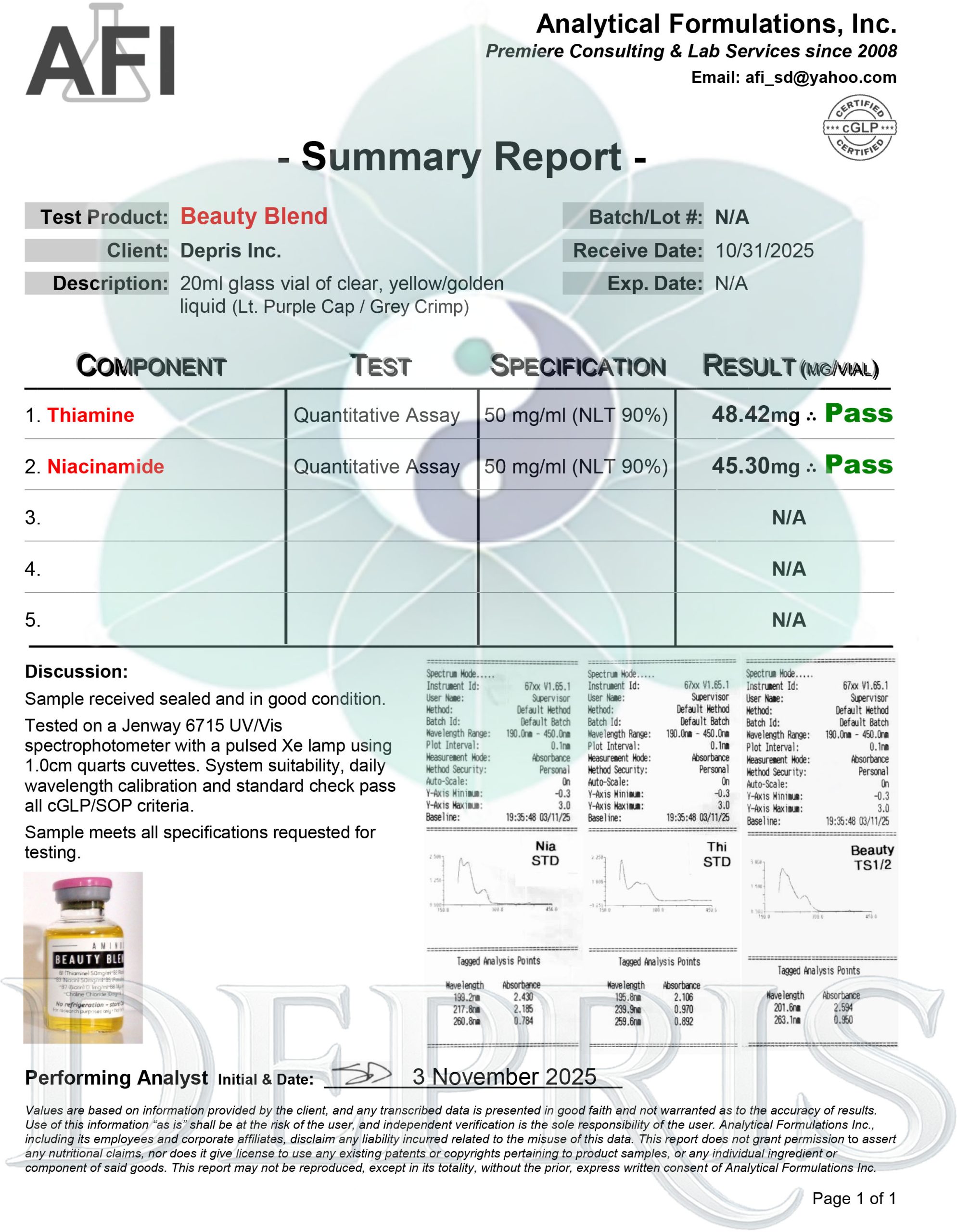 • B3 (Niacinamide) – 50 mg/ml