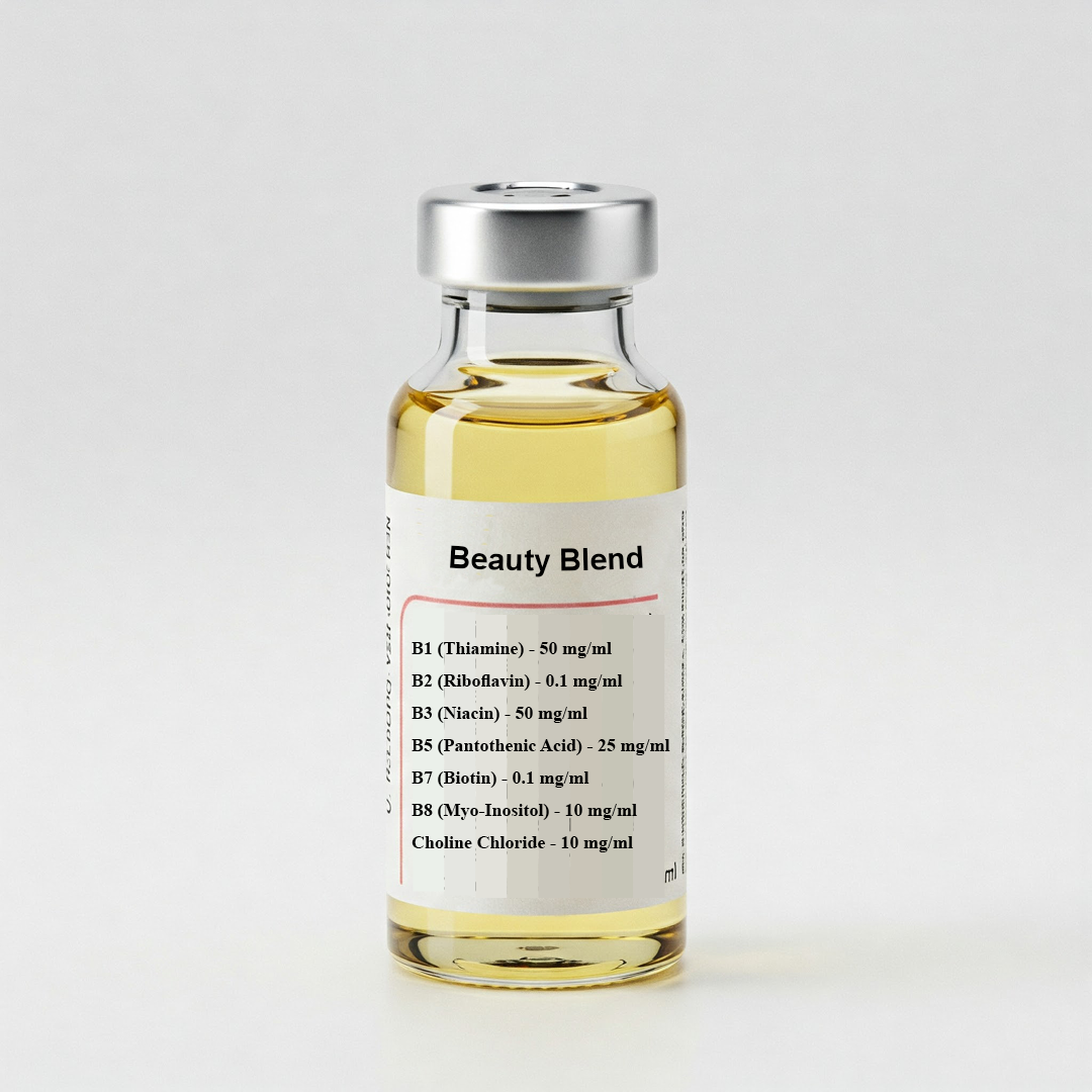B1 (Thiamine) – 50 mg/ml B2 (Riboflavin) – 0.1 mg/ml B3 (Niacinamide) – 50 mg/ml B5 (Sodium D-Pantothenate) – 25 mg/ml B7 (Biotin) – 0.1 mg/ml B8 (Myo-Inositol) – 10 mg/ml Choline Chloride – 10 mg/ml Note: Due to high concentration, some vials may come with sediments at the bottom. Shake well before use.