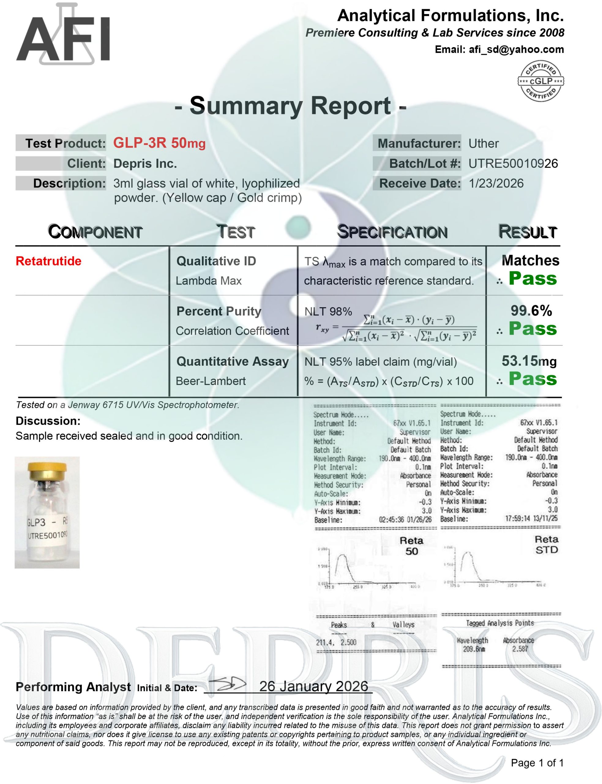 Our GLP products are offered strictly as research chemicals. They are not intended for human consumption, medical treatment, or diagnostic use. All items are supplied as lyophilized powder, and it is the sole responsibility of the purchaser to understand and accept full responsibility for proper handling and reconstitution.