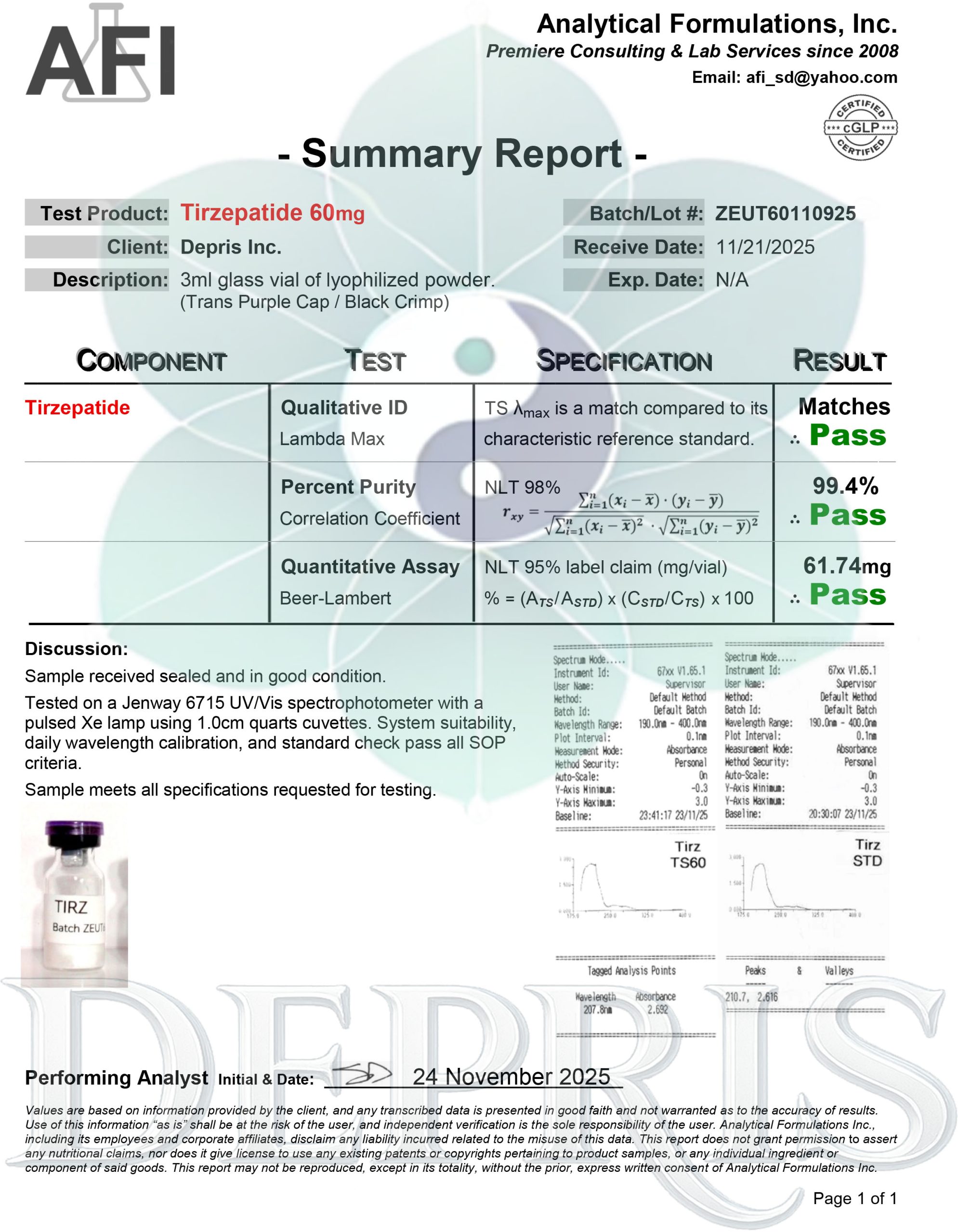 Our GLP products are offered strictly as research chemicals. They are not intended for human consumption, medical treatment, or diagnostic use. All items are supplied as lyophilized powder, and it is the sole responsibility of the purchaser to understand and accept full responsibility for proper handling and reconstitution.