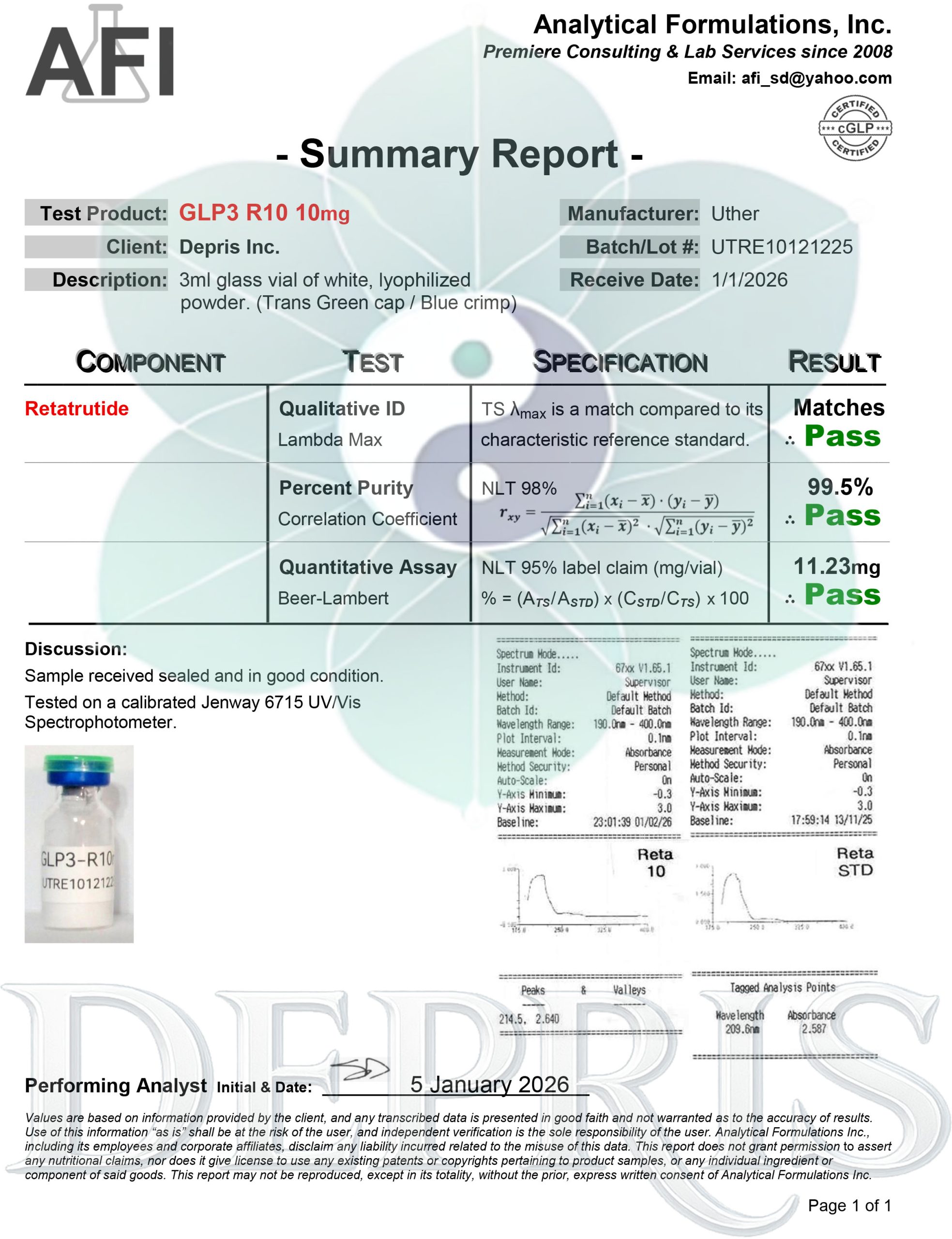 Our GLP products are offered strictly as research chemicals. They are not intended for human consumption, medical treatment, or diagnostic use. All items are supplied as lyophilized powder, and it is the sole responsibility of the purchaser to understand and accept full responsibility for proper handling and reconstitution.