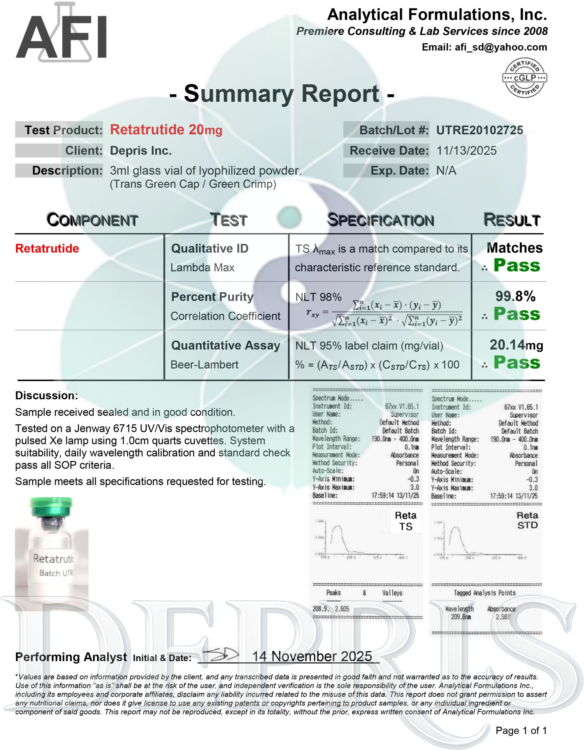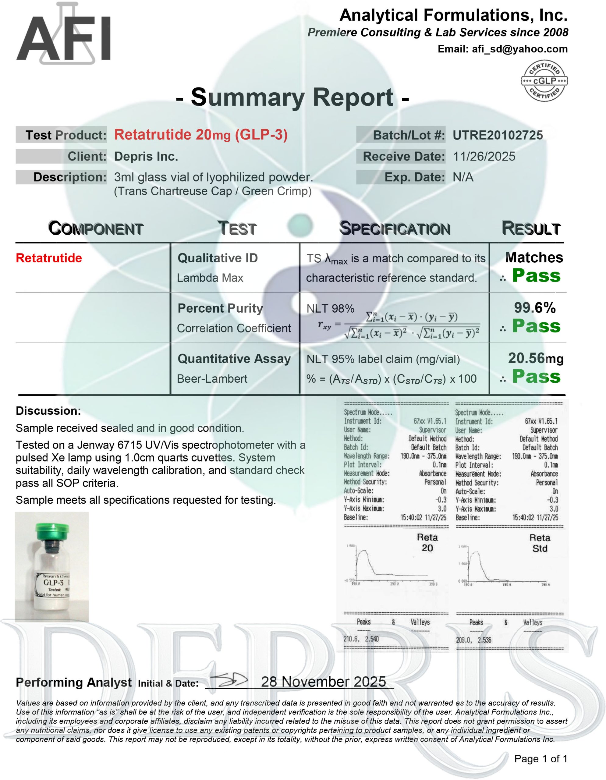 Our GLP products are offered strictly as research chemicals. They are not intended for human consumption, medical treatment, or diagnostic use. All items are supplied as lyophilized powder, and it is the sole responsibility of the purchaser to understand and accept full responsibility for proper handling and reconstitution.