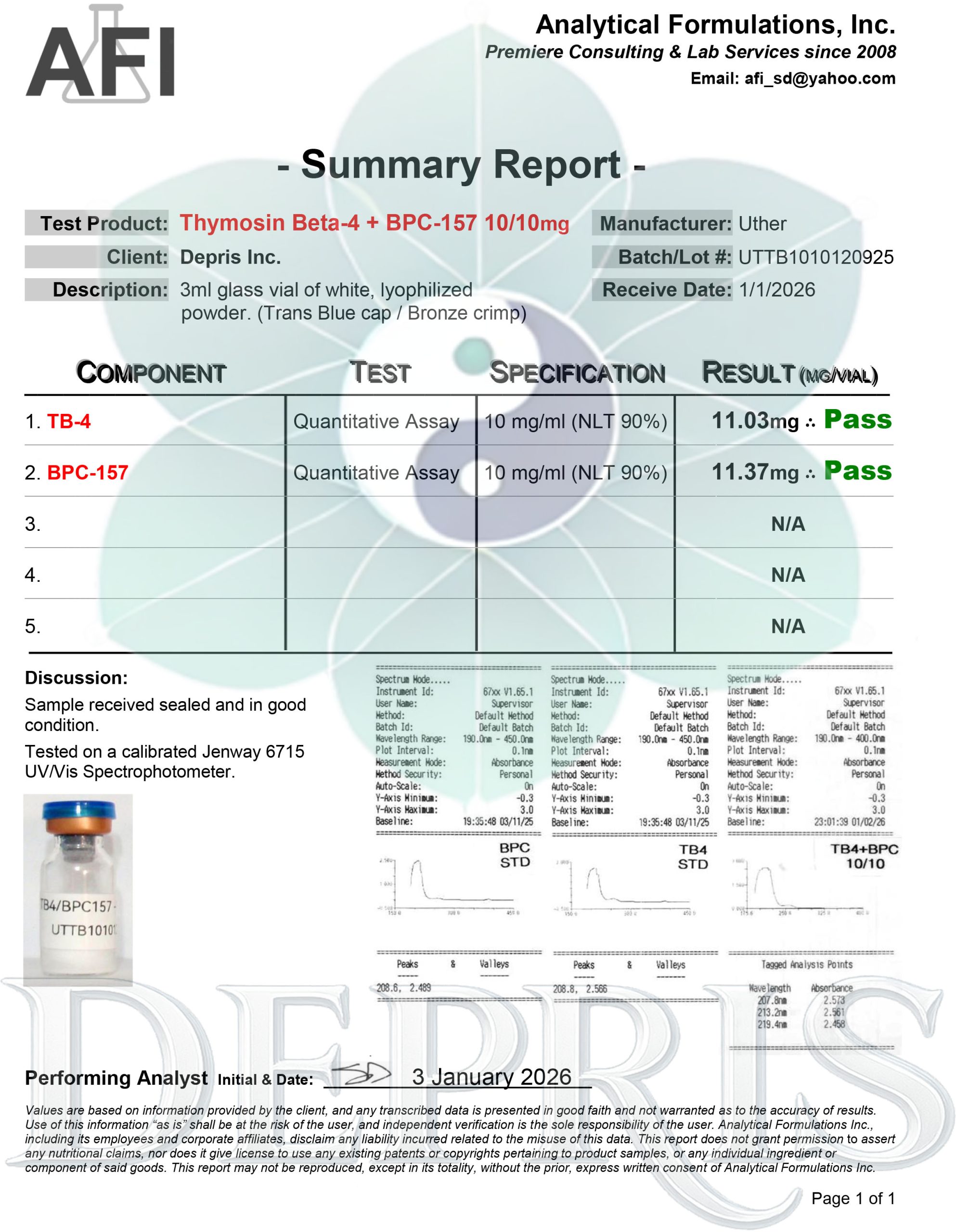 1 Glass Ampoule, 3 Glass Ampoule